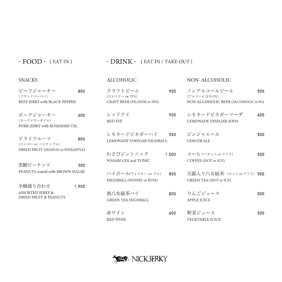 NICKJERKY -KOBEBEEF JERKY & CRAFT BEER CAFE- Menu